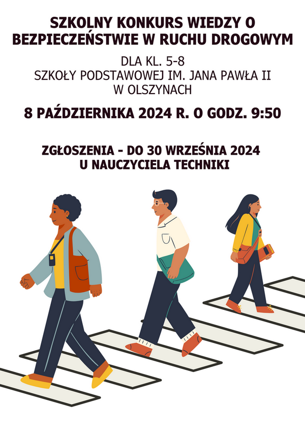 Regulamin SZKOLNEGO KONKURSU WIEDZY O BEZPIECZEŃSTWIE W RUCHU DROGOWYM dla uczniów kl. 5-8 Szkoły Podstawowej im. Jana Pawła II w Olszynach