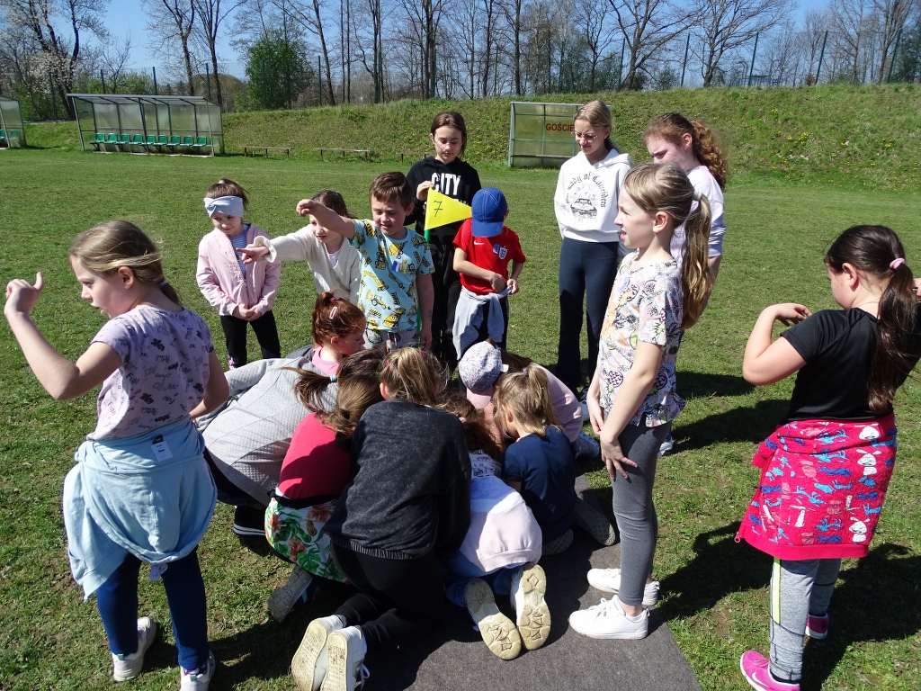 Dnia 14.04.2025 r. w naszej szkole odbyła się gra terenowa pod hasłem „Chcemy pamiętać” dla uczniów klas I–III w ramach działań edukacyjno-patriotycznych z okazji 80. rocznicy zakończenia II wojny światowej. Wydarzenie to miało na celu przypomnienie najważniejszych wydarzeń historii Olszyn i przekazywanie jej dalej. Gra ta została przygotowana na podstawie spaceru po Olszynach z Panem Krzysztofem Cygnarem, podczas którego dowiedzieliśmy się wielu ciekawych rzeczy na temat wydarzeń w Olszynach, miejscach pamięci. Podążając szlakiem lokalnej historii Olszyn dzieciaki wykonywały zadania praktyczne, jak zabandażowanie ręki, rzut do celu czy złożenie prototypu samolotu Liberator oraz rozwiązywały krzyżówkę, układały puzzle, rozcinały zdania, dopasowywały przedmioty do miejsc i rozszyfrowywały hasło. Wszyscy uczestnicy podzieleni na 6 grup zmagali się z zadaniami na czas, a grupa, która wykonała zadania najszybciej otrzymała dyplomy, dla „Tych, którzy pamiętają”. Podczas imprezy gościliśmy Wójta gminy Rzepiennik Strzyżewski Pana Marka Karasia oraz pracownika Gminnego Centrum Kultury, Czytelnictwa i Promocji w Rzepienniku Strzyżewskim - Krzysztofa Cygnara. Wydarzenie zostało przygotowane przez Panie Agnieszkę Kurcab, Kingę Iwaniec oraz Małgorzatę Matuszak.