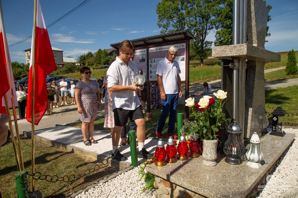 Delegacja uczniów złożyła kwiaty pod Pomnikiem Poległych Partyzantów w Dąbrach oraz uczestniczyła w Mszy św. polowej.