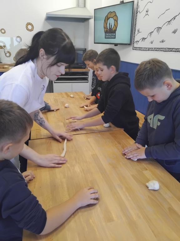 Kolejny punkt programu stanowiło „Żywe Muzeum Obwarzanka”. Podczas warsztatów dzieci odkryły historię obwarzanka, tajniki jego produkcji, a co najważniejsze, same wykonały ten krakowski specjał. Wyszły z muzeum z głową pełną wiedzy, trzymając w ręku własnoręcznie wykonanego obwarzanka z wybranym dodatkiem. Dzięki udostępnionemu przepisowi będą mogły zrobić tradycyjne obwarzanki w domu.