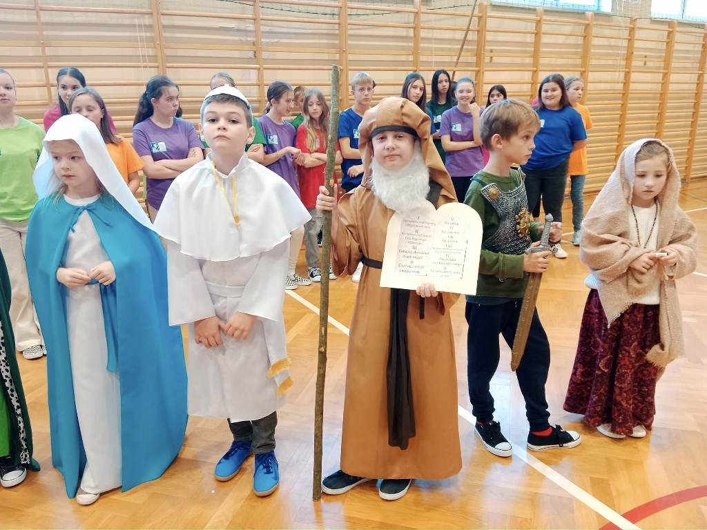 18.10.2023 r. w Szkole Podstawowej im. Jana Pawła II w Olszynach odbył się wyjątkowy koncert „W pełni mocy wdzięczności i chwały” pod takim tytułem dzieci z oddziałów przedszkolnych zainaugurowały obchody Tygodnia Papieskiego w naszej szkole. Najmłodsi nasi uczniowie pamiętają, naśladują oraz godnie reprezentują swojego patrona Jana Pawła II. W przepięknych strojach z rzeszą aniołów przedstawili inscenizacje „Czy Wy wiecie, że My mamy Papieża…” aż się serce raduje słuchając wypowiedzi najmłodszych dzieci.