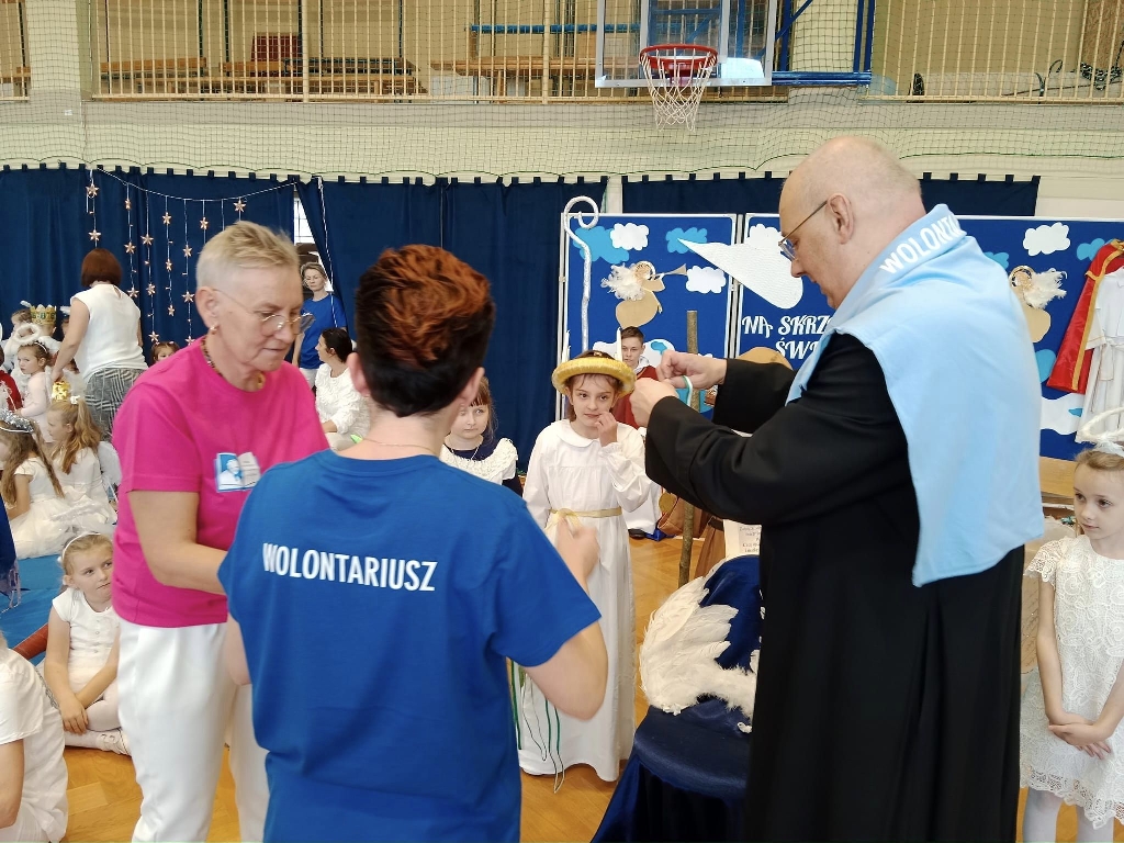 Bardzo dziękuję za pomoc w naszym dziele miłosierdzia księdzu proboszczowi Dariuszowi Nawalaniec, organiście Panu Arturowi Gurbiszowi, nauczycielom, pracownikom szkoły i Rodzicom. Również nieocenione okazało się duże zaangażowanie wolontariuszy z animatorką Panią Pauliną Kordelą i Małej Armii JP II.
