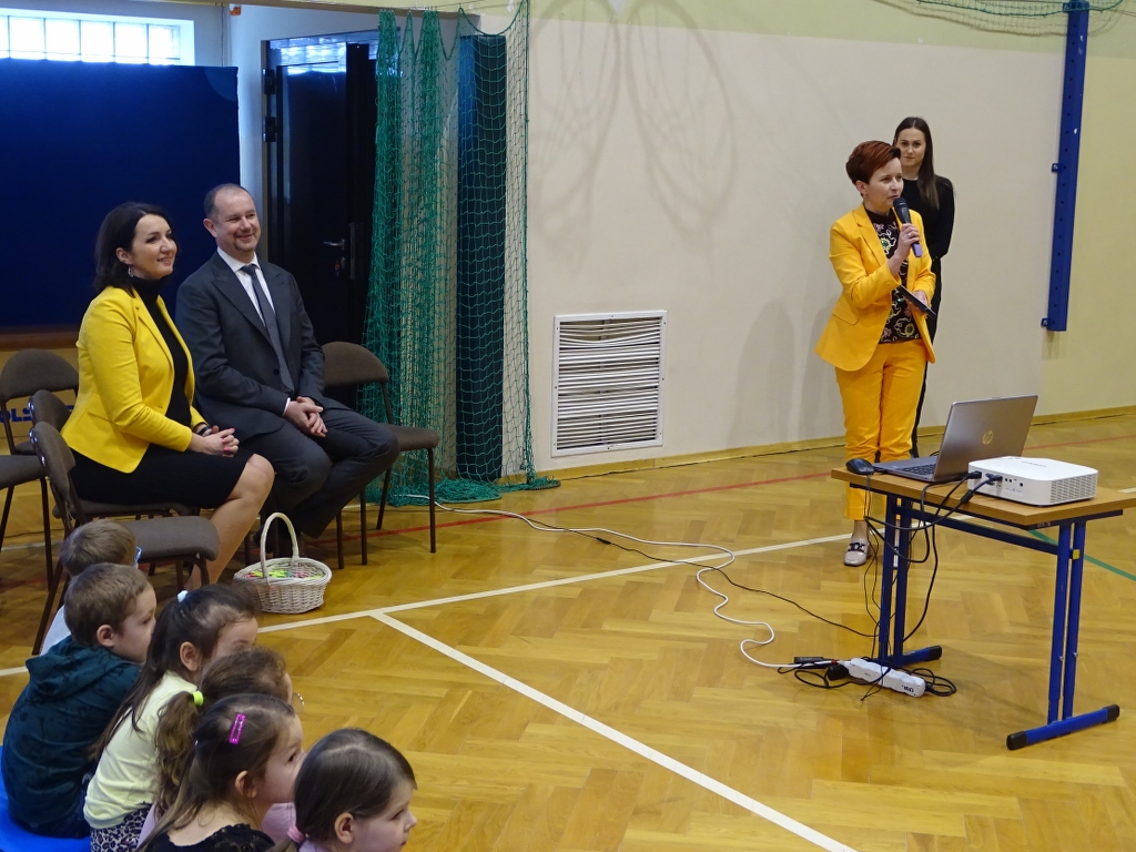 Dyrektor szkoły Pani Bożena Brzęczek, witając przybyłych gości na XI Spotkanie z Barankiem Wielkanocnym przytoczyła słowa wiersza księdza Jana Twardowskiego