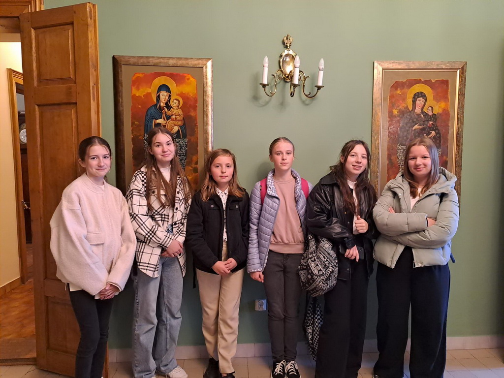Najpierw uczniowie zwiedzili Dworek Jana Ignacego Paderewskiego – jednego z Ojców Niepodległej Polski. Mieli okazję obejrzeć m.in.: gabinet pana domu, sypialnię jego żony, salony, pokój chiński i salonik. W pomieszczeniach zgromadzono cenne eksponaty: oryginalny fortepian kompozytora, jego księgozbiór i kufry podróżne oraz wiele osobistych pamiątek. Wewnątrz Dworku wyeksponowano wystawę „Madonny polskie”, której autorem jest Franciszek Kafel, to interpretacje malarskie ikon z polskich sanktuariów maryjnych z dopisanym kaligraficznym tekstem modlitw Jana Pawła II.