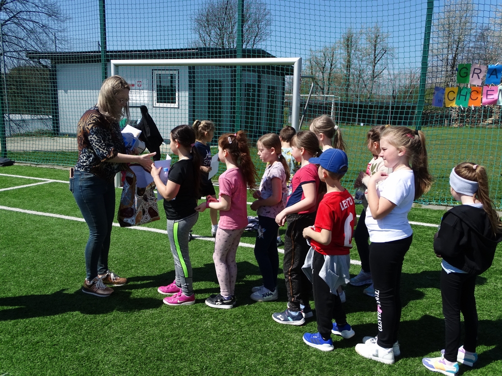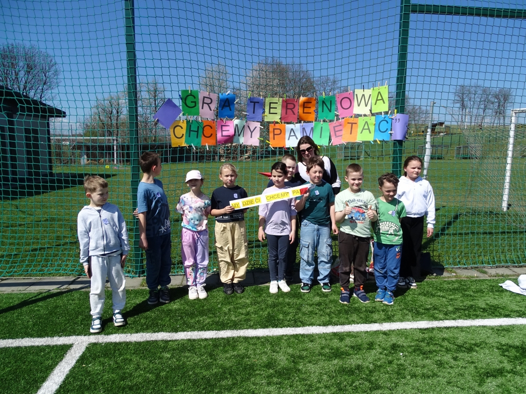 Dnia 14.04.2025 r. w naszej szkole odbyła się gra terenowa pod hasłem „Chcemy pamiętać” dla uczniów klas I–III w ramach działań edukacyjno-patriotycznych z okazji 80. rocznicy zakończenia II wojny światowej. Wydarzenie to miało na celu przypomnienie najważniejszych wydarzeń historii Olszyn i przekazywanie jej dalej. Gra ta została przygotowana na podstawie spaceru po Olszynach z Panem Krzysztofem Cygnarem, podczas którego dowiedzieliśmy się wielu ciekawych rzeczy na temat wydarzeń w Olszynach, miejscach pamięci. Podążając szlakiem lokalnej historii Olszyn dzieciaki wykonywały zadania praktyczne, jak zabandażowanie ręki, rzut do celu czy złożenie prototypu samolotu Liberator oraz rozwiązywały krzyżówkę, układały puzzle, rozcinały zdania, dopasowywały przedmioty do miejsc i rozszyfrowywały hasło. Wszyscy uczestnicy podzieleni na 6 grup zmagali się z zadaniami na czas, a grupa, która wykonała zadania najszybciej otrzymała dyplomy, dla „Tych, którzy pamiętają”. Podczas imprezy gościliśmy Wójta gminy Rzepiennik Strzyżewski Pana Marka Karasia oraz pracownika Gminnego Centrum Kultury, Czytelnictwa i Promocji w Rzepienniku Strzyżewskim - Krzysztofa Cygnara. Wydarzenie zostało przygotowane przez Panie Agnieszkę Kurcab, Kingę Iwaniec oraz Małgorzatę Matuszak.