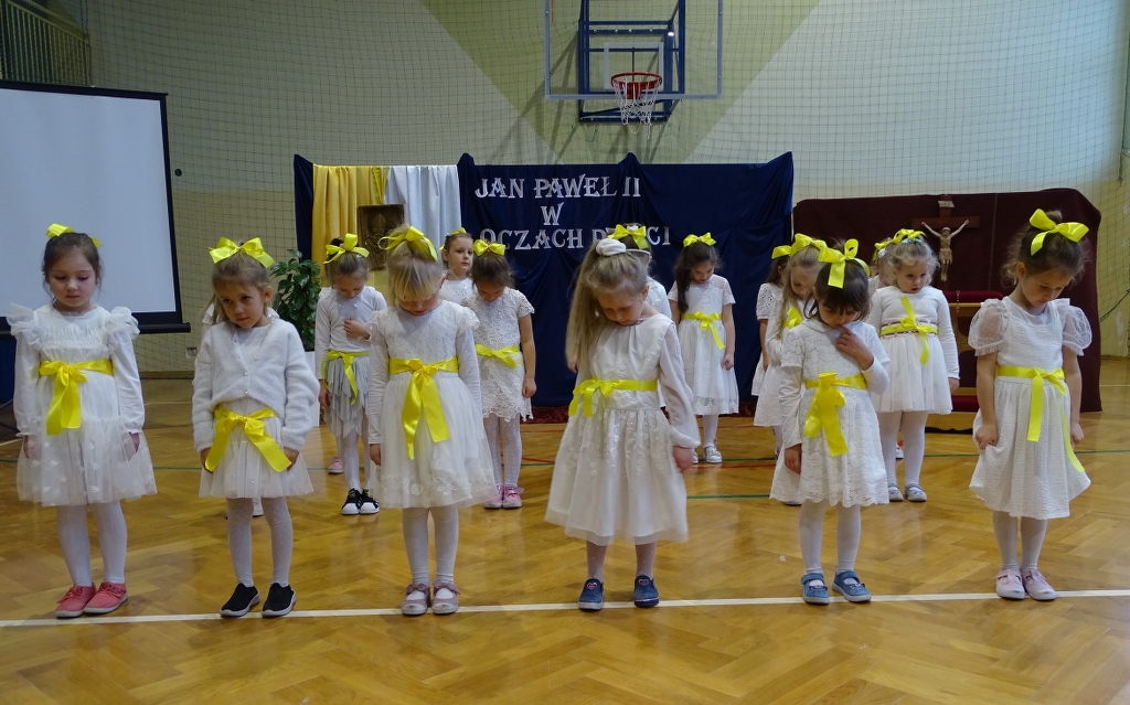 Dziękujemy wychowawczyniom pani Kindze Bęben i pani Katarzynie Bednarz za wlewanie w małe serduszka miłości i szacunku do Naszego Patrona - Jana Pawła II.