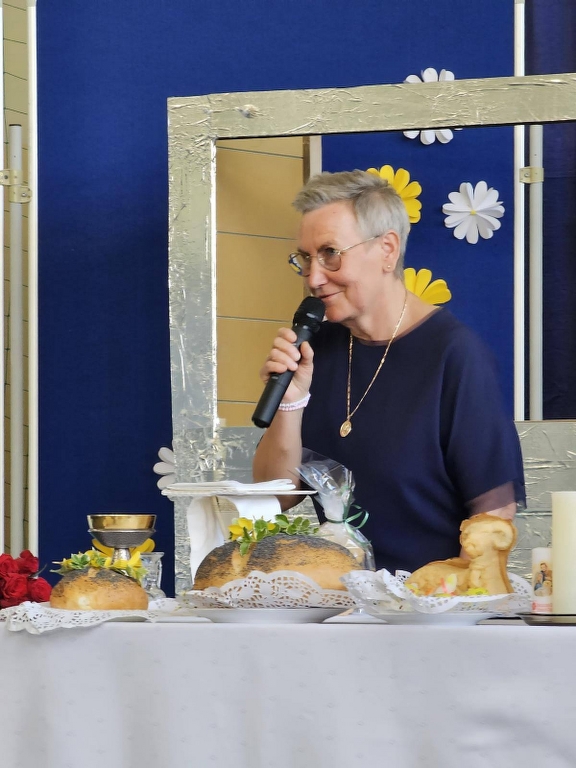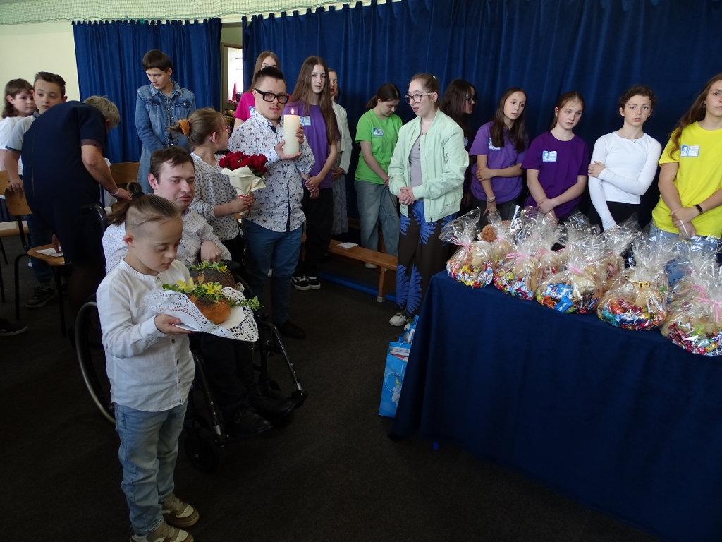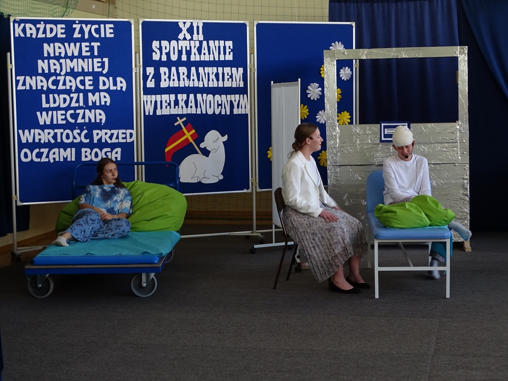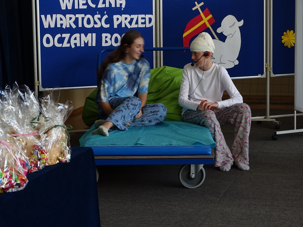 Po oficjalnym powitaniu wolontariusze przedstawili wzruszające widowisko „Oskar i pani Róża”, które poruszyło serca uczestników i przypomniało o wartości życia, nawet tego najmniej dostrzeganego przez ludzi, ale zawsze cennego w oczach Boga. Po przedstawieniu wszyscy zasiedli do wspólnego stołu wielkanocnego, gdzie czekał poczęstunek oraz upominki dla gości.
