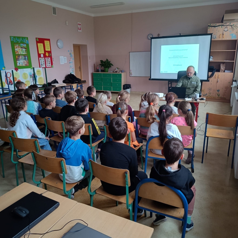 W minionym tygodniu odwiedził nas Pan Piotr, pracownik Parków Krajobrazowych Małopolski. Podczas spotkań opowiedział naszym uczniom o zwierzętach Parku Krajobrazowego Pasma Brzanki.