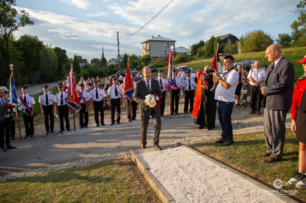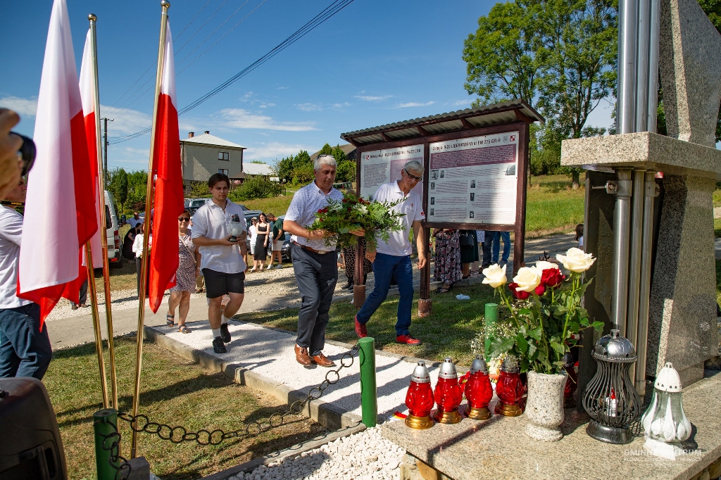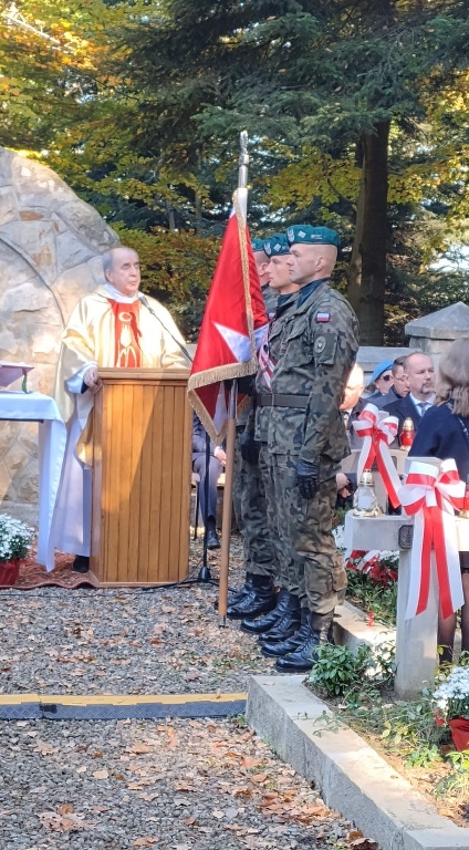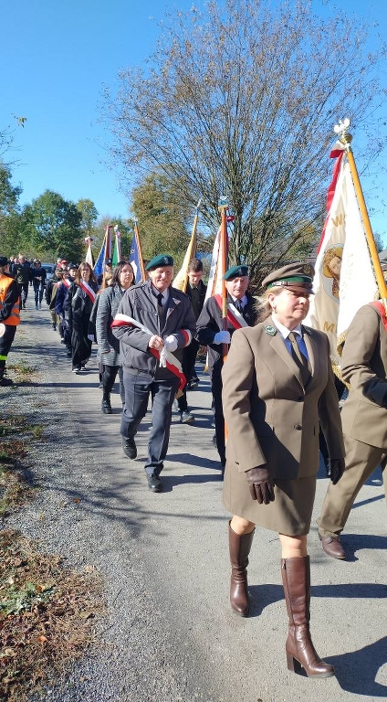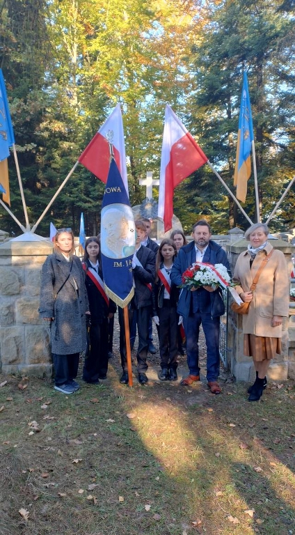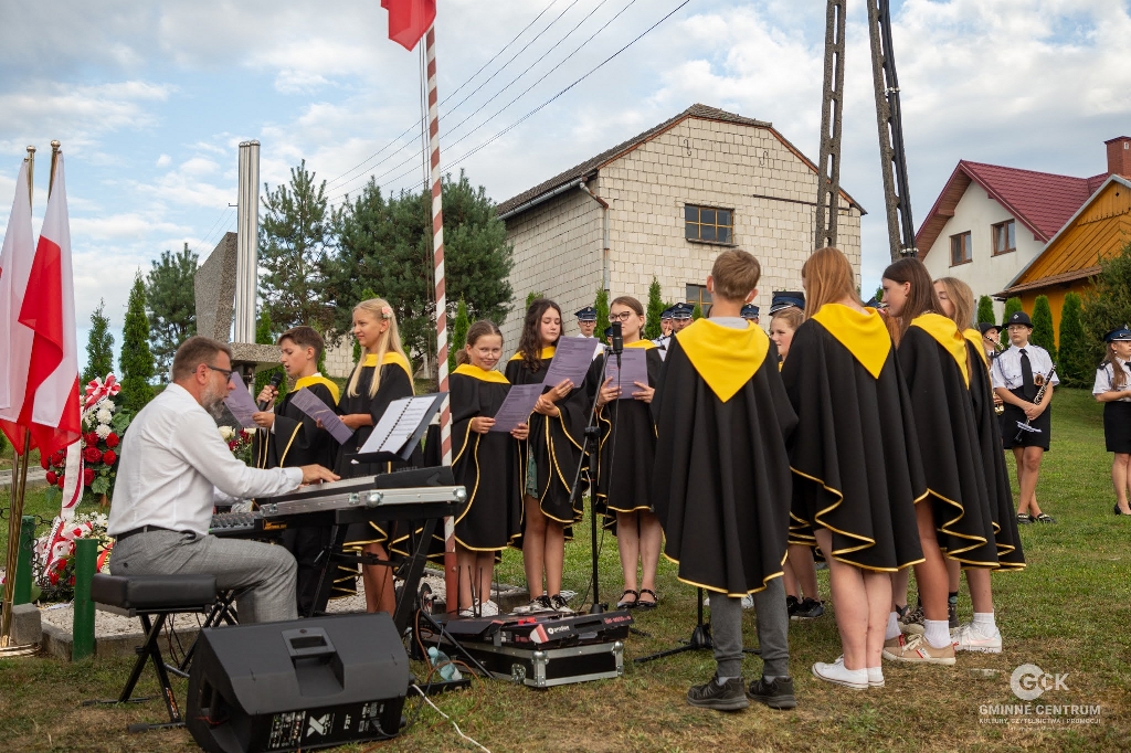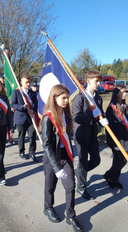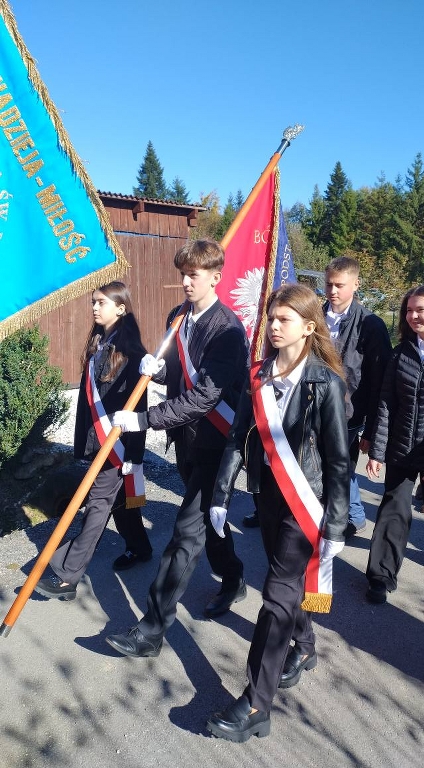 Delegacja uczniów złożyła kwiaty pod Pomnikiem Poległych Partyzantów w Dąbrach oraz uczestniczyła w Mszy św. polowej.