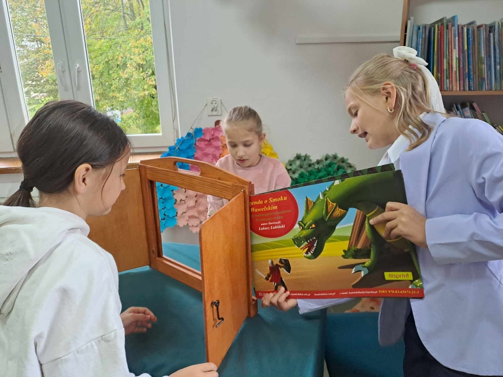 Uczniowie klasy 4 odwiedzili dziś Bibliotekę Publiczną w Olszynach. Zapoznali się z ofertą biblioteki, obejrzeli teatrzyk KAMISHIBAI. Był też czas na gry integracyjne, zabawy w teatr i wypożyczenie książek.