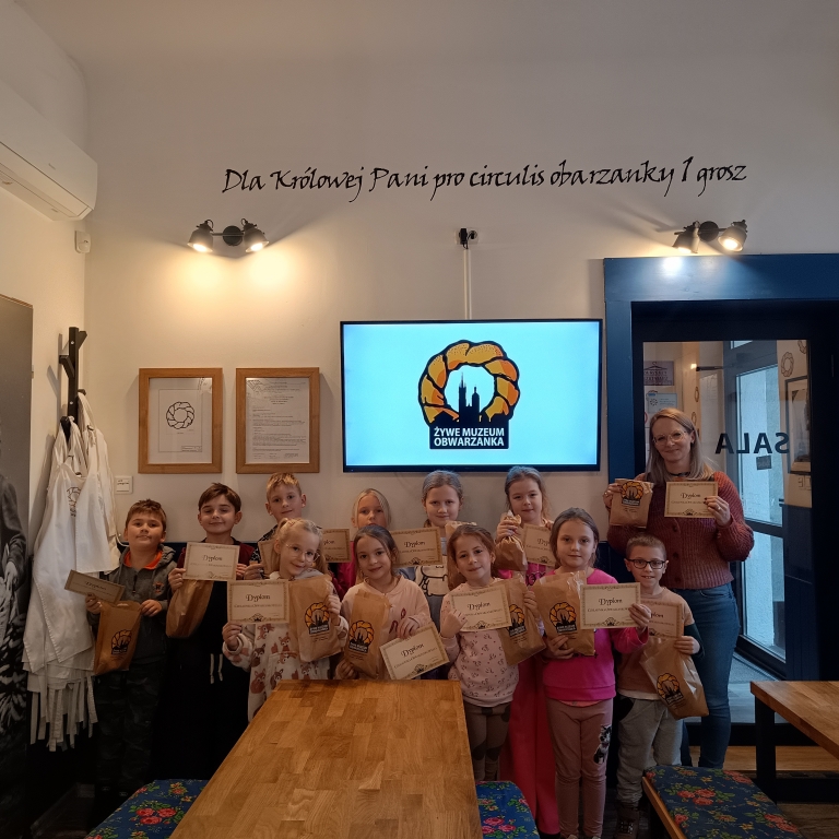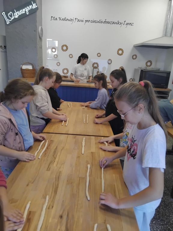 Kolejny punkt programu stanowiło „Żywe Muzeum Obwarzanka”. Podczas warsztatów dzieci odkryły historię obwarzanka, tajniki jego produkcji, a co najważniejsze, same wykonały ten krakowski specjał. Wyszły z muzeum z głową pełną wiedzy, trzymając w ręku własnoręcznie wykonanego obwarzanka z wybranym dodatkiem. Dzięki udostępnionemu przepisowi będą mogły zrobić tradycyjne obwarzanki w domu.
