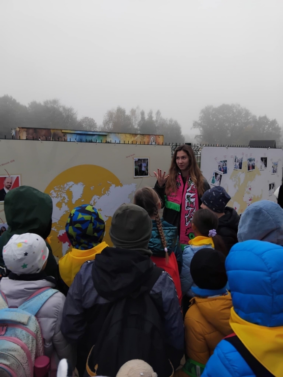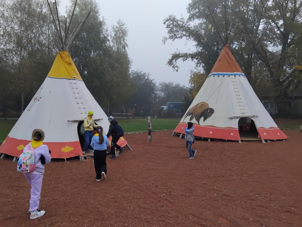 Następnego dnia z rana odwiedziliśmy Park edukacji globalnej „Wioski świata”. Tu dzieci mogły zobaczyć sześć osad z różnych części świata: tradycyjną ghańską wioskę, peruwiańską chatę, indiańskie tipi, arktyczne igloo, mongolską jurtę oraz papuaski dom na palach. Każde z domostw wyposażone było w charakterystyczne przedmioty, instrumenty czy dziecięce zabawki przywiezione wprost z danego kraju. Dzięki fotografiom i różnego rodzaju eksponatom pochodzącym z odległych zakątków świata nasi uczniowie poznali realia życia codziennego mieszkańców odległych krajów. Dzięki warsztatom trzecioklasiści „przenieśli się” do Azji, w mongolskiej jurcie odkryli ciekawą przeszłość tego kraju, poznali oryginalne wyposażenie domów i stroje oraz realia życia na rozległych mongolskich stepach. Dzieci miały także okazję spotkać się z alpakami. Wizyta w „Wioskach świata” miała na celu oczywiście edukację oraz uwrażliwienie na problemy, z jakimi muszą mierzyć się mieszkańcy prezentowanych regionów.