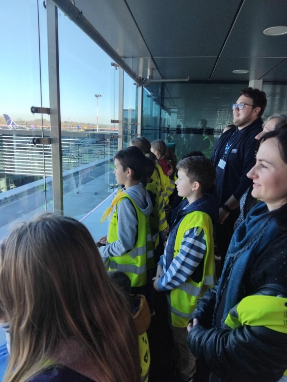 Następnie zwiedziliśmy lotnisko w Balicach, a dokładniej Centrum Edukacji Lotniczej Kraków Airport - jedyny w Polsce, a nawet unikatowy na skalę światową ośrodek popularyzowania wiedzy z zakresu lotnictwa cywilnego. Centrum przypomina lotnisko w pigułce i wyposażone jest w urządzenia spotykane na każdym lotnisku świata. Podczas zajęć uczniowie mieli do dyspozycji szkoleniowy terminal pasażerski z prawdziwą infrastrukturą, punktem kontroli bezpieczeństwa, a także wnętrze statku powietrznego, w którym mogli wygodnie rozsiąść się w fotelach lotniczych. Dodatkowo mieliśmy także okazję obserwować płytę lotniska, lądujące i startujące samoloty oraz poznać realia pracy tzw. marszałków – koordynatorów ruchu lotniczego.