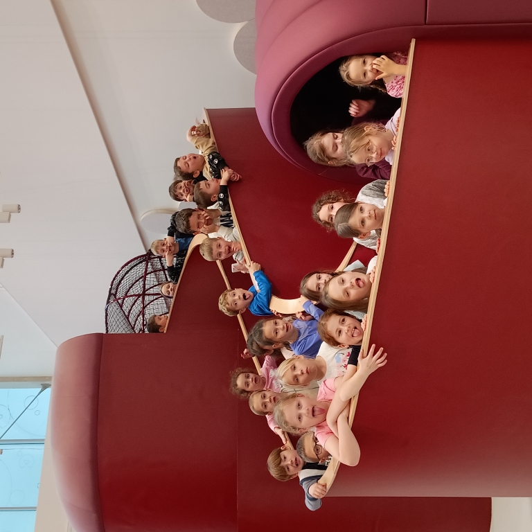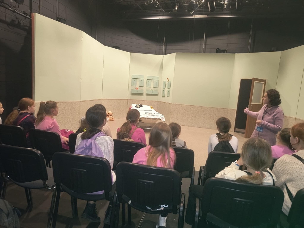 Po spektaklu czekała na dzieci miła niespodzianka w postaci zdjęcia z aktorami. Następnie uczniowie mieli możliwość pozwiedzać teatr „od kulis” i zajrzeć do miejsc, do których na co dzień wchodzą tylko pracownicy. Zobaczyli wszystkie sceny: Dużą, Małą, Underground, Foyer oraz Scenę na Dachu. Dzieci dowiedziały się, kto pracuje w teatrze, w jaki sposób tworzone są przedstawienia, zajrzały do różnych pracowni i garderób.