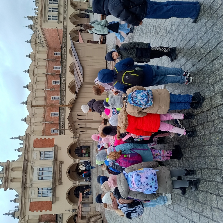 Następnie pojechaliśmy autokarem do centrum Krakowa. Podczas spaceru ulicami miasta pani przewodnik opowiedziała o zabytkach, które napotykaliśmy po drodze. Kolejno udaliśmy się na seans do Krakowskich Legend, gdzie dzieci poznały opowieści związane z historią dawnego Krakowa. Dzięki interaktywnym elementom i wielu niespodziankom seans dostarczył niezapomnianych wrażeń i poszerzył wiedzę na temat krakowskich opowieści.
